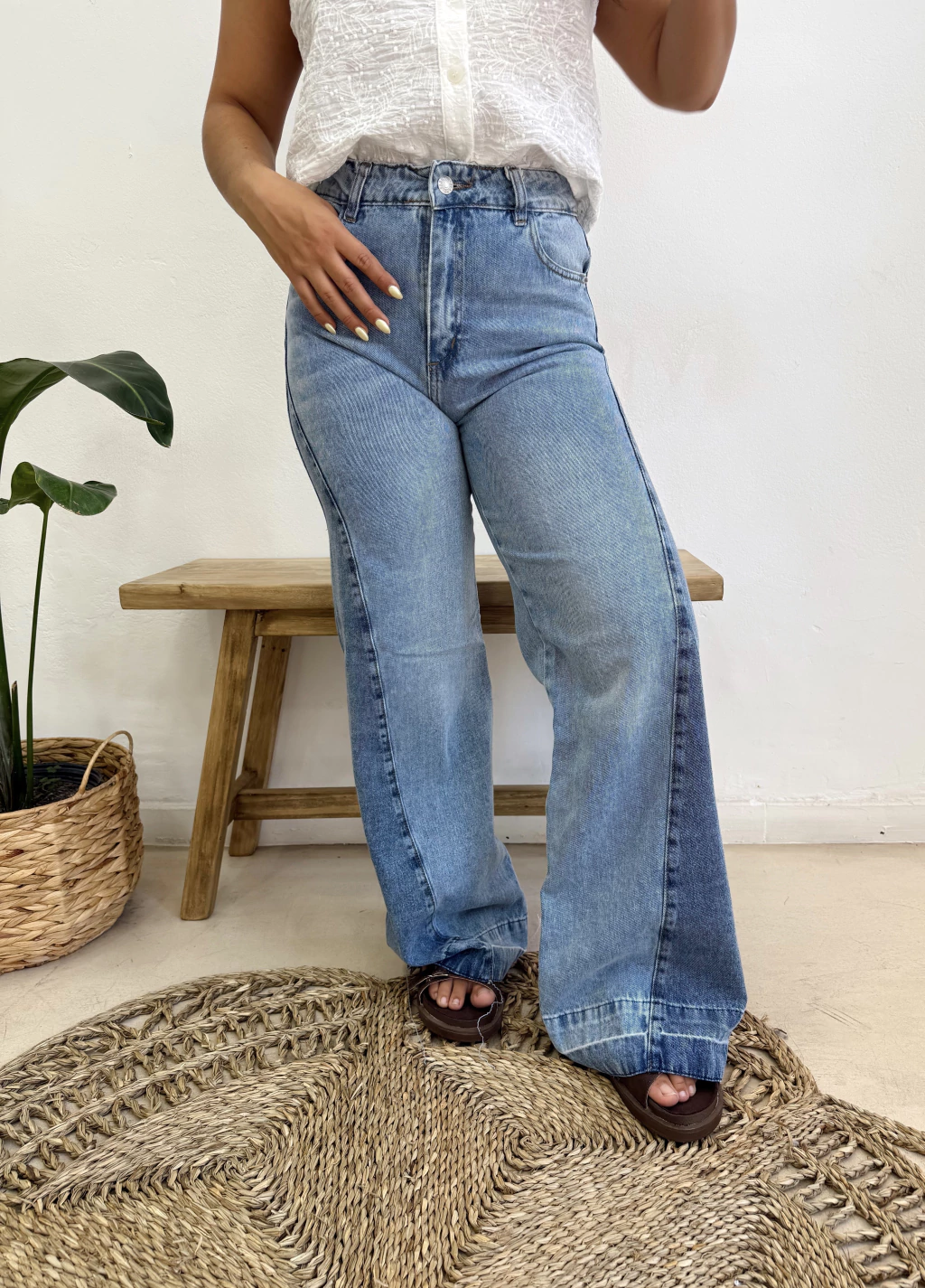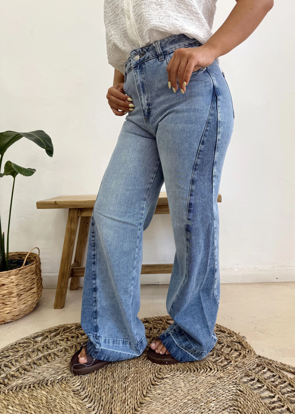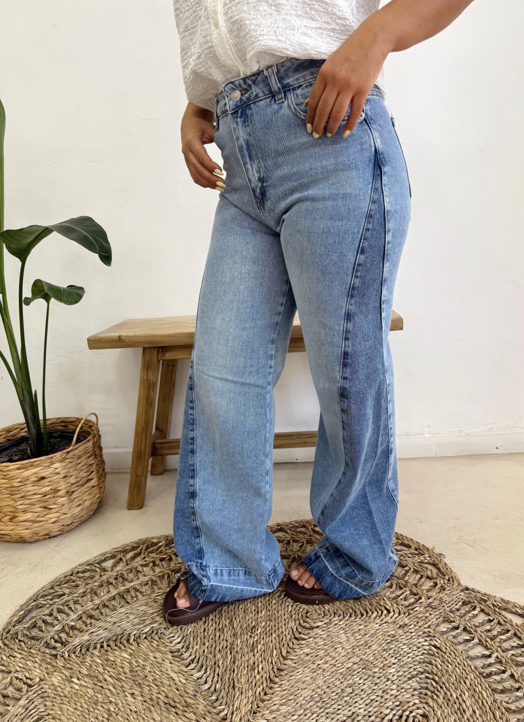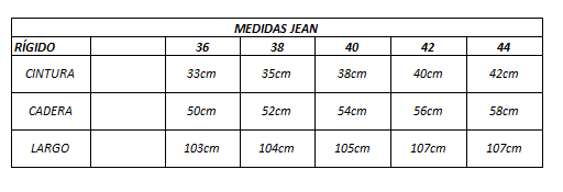 Jean estilo wide leg con recorte en laterales. Tabla de talles: