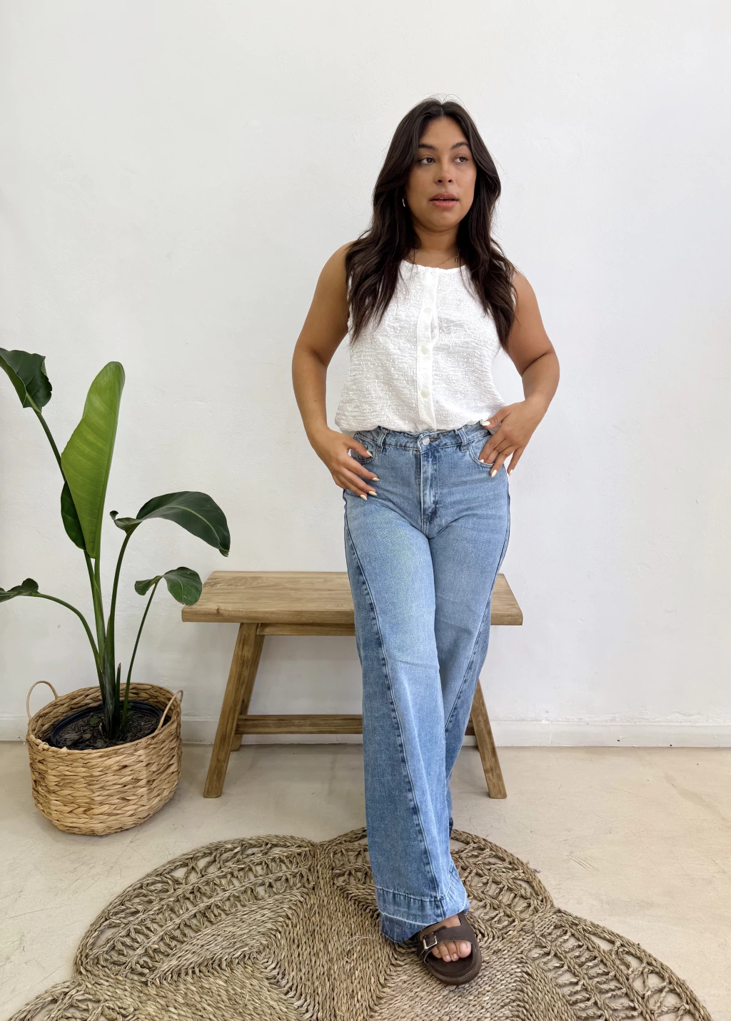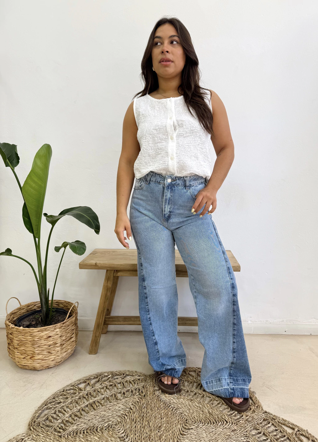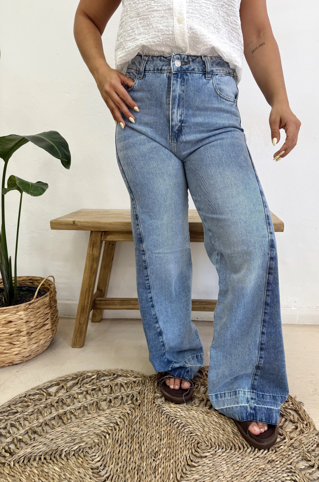 Jean estilo wide leg con recorte en laterales. Tabla de talles: